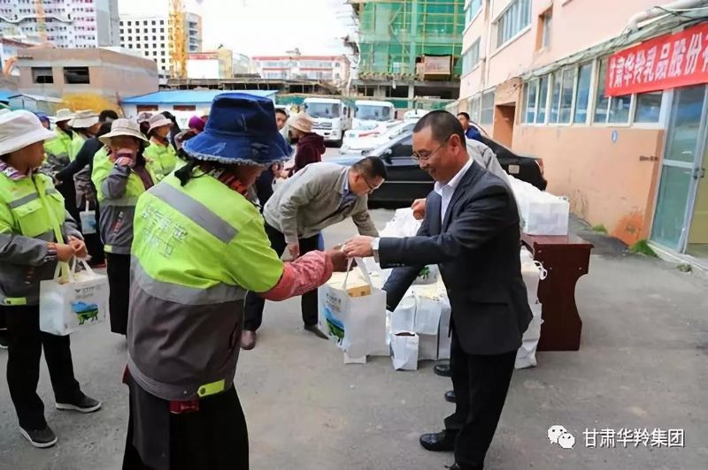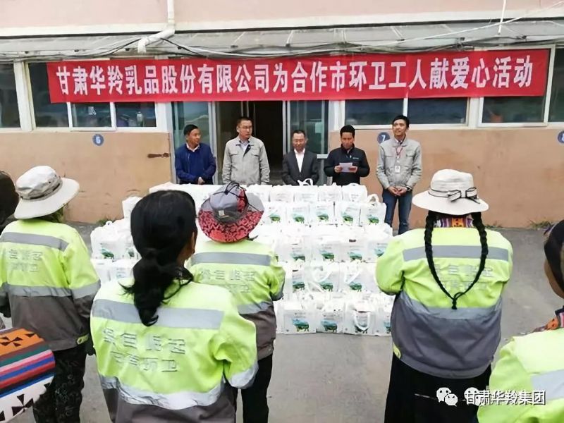 甘肅華羚乳品股份有限公司為合作市環(huán)衛(wèi)工送去了公司生產(chǎn)的牦牛乳奶粉、牦牛乳酥油茶等總價(jià)值58000元的節(jié)日慰問品,合作市生態(tài)產(chǎn)業(yè)園管委會(huì)主任周文,合作市綜合執(zhí)法局局長劉尕萬出席了此次活動(dòng),公司副總經(jīng)理馬小平代表公司在活動(dòng)現(xiàn)場(chǎng)為環(huán)衛(wèi)工們送去了節(jié)日的問候,并發(fā)放了慰問禮品,祝愿環(huán)衛(wèi)工身體健康,節(jié)日快樂!