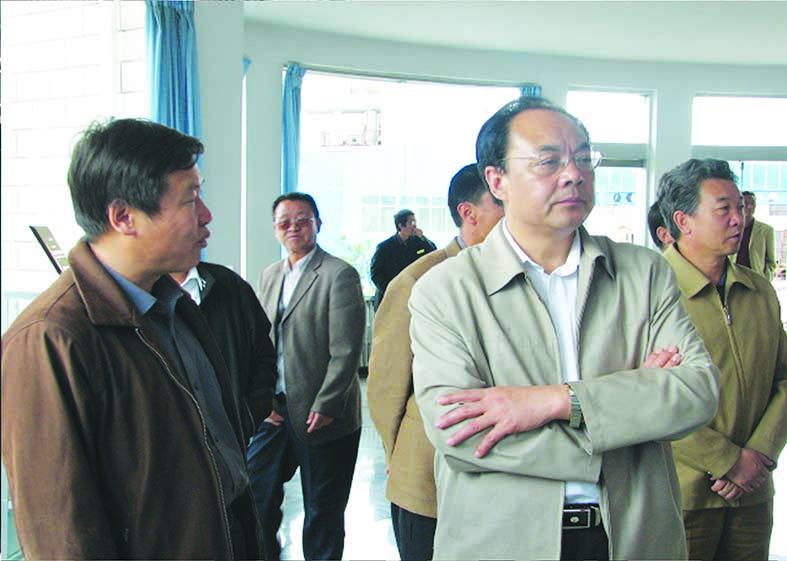 甘肅省扶貧攻堅行動協調推進領導小組副組長劉立軍(右一),原甘南州委書記陳建華(后排右一)視察華羚公司