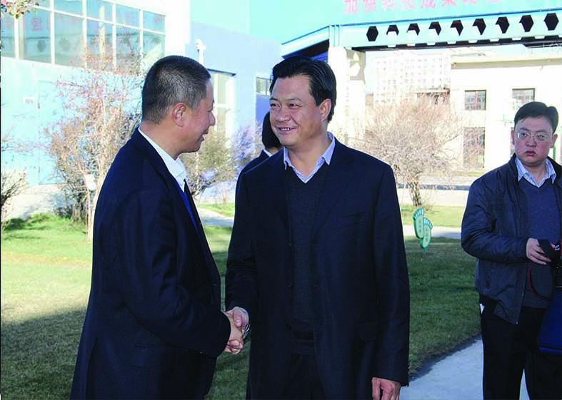 甘南州委副書記、州長(zhǎng)趙凌云(右)在華羚集團(tuán)董事長(zhǎng)敏文祥(左)的陪同下視察華羚公司