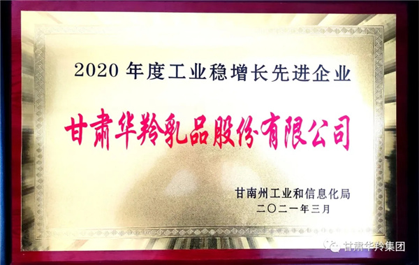甘肅華羚乳品股份有限公司榮獲 “2020年度工業(yè)穩(wěn)增長(zhǎng)先進(jìn)企業(yè)”榮譽(yù)稱號(hào)!